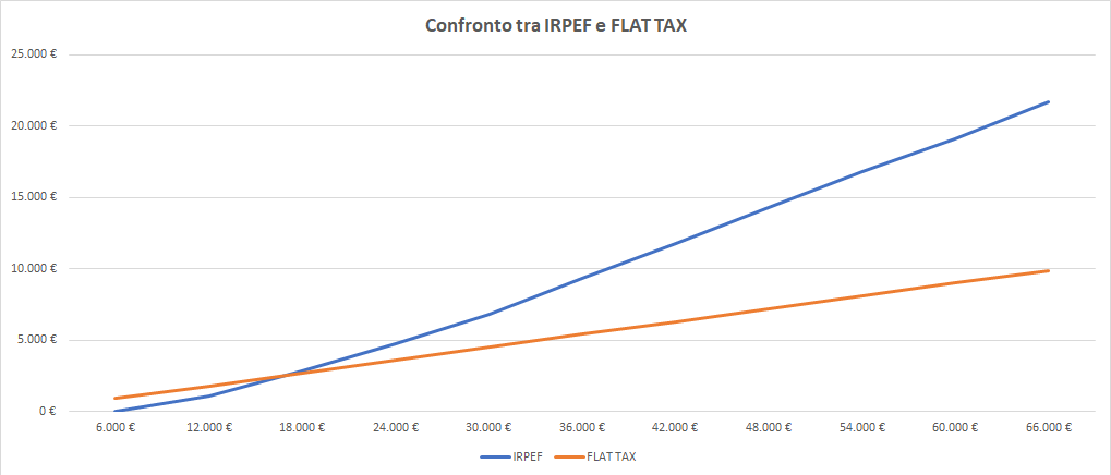 Infatti, bisogna considerare che i soggetti IRPEF a basso reddito non subiscono tassazione nella cosiddetta “no tax area” (per i lavoratori dipendenti, per esempio, l’area copre da 0 a 8.000 Euro di reddito) per effetto delle detrazioni minime spettanti; inoltre, ipotizzando una flat tax al 15% (già applicata ai lavoratori autonomi a determinate condizioni), il break even point si troverebbe intorno ai 18.000 Euro (non contando tutte le altre deduzioni e detrazioni potenzialmente applicabili ai redditi dei singoli contribuenti).